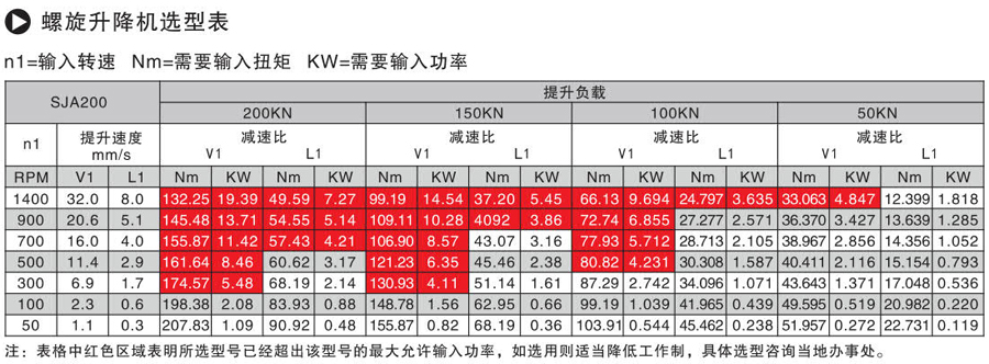 螺旋升降機正常工作狀態(tài)下的輸入功率不能超過最大輸入功率,輸入功率kw=(滿載扭矩Nm x負載率x輸入轉(zhuǎn)速rpm )/ 9550m,