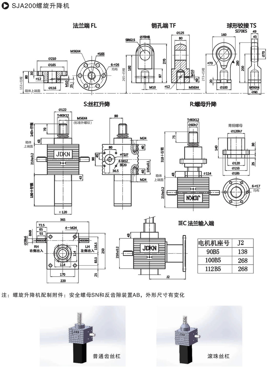 SJA螺旋升降機又稱SJA絲杠升降機,本產(chǎn)品是一種超重部件,可起升、下降及借助附件實現(xiàn)推進、翻轉(zhuǎn)及各種高度位置調(diào)整等功能。結(jié)構(gòu)及裝配形式可選,可按客戶要求定制,安裝方便、使用靈活、功能多、配套及形式多、可靠性好、使用壽命長等優(yōu)點。